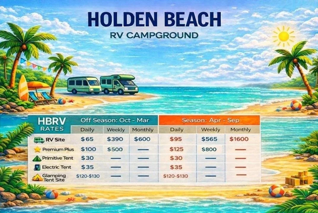Glamping Sites: Our amazing Glamping sites give you the comforts of home while relaxing in the coolest accommodations in the area. Nothing beats camping, especially when its all fancy and all ready set up for you. 4 total people maximum per Glamper. Additional information on Glamping can be found at www.HoldenBeachGlamping.com